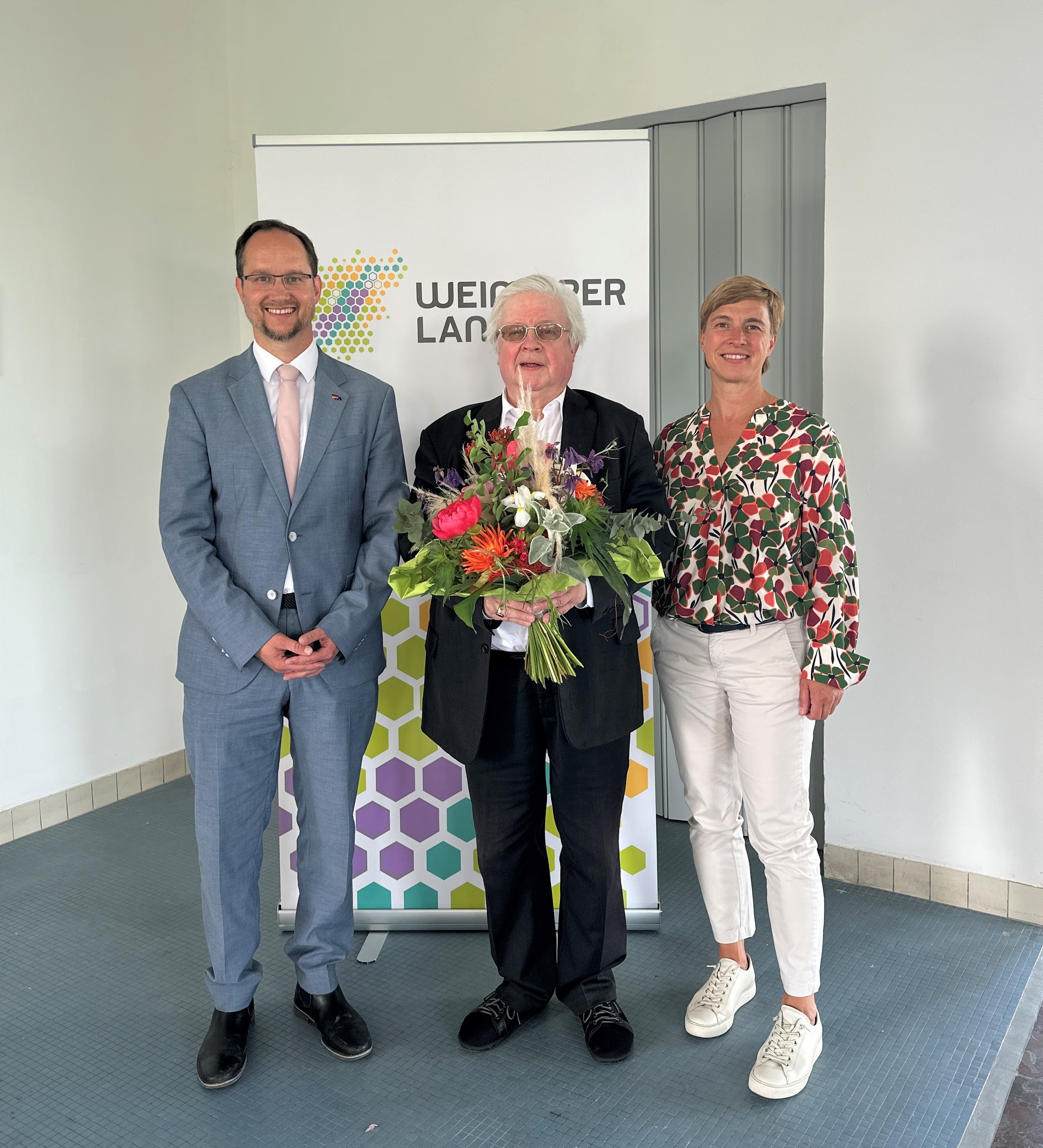 Von links nach rechts: Landtagsabgeordneter Thomas Gottweiss, Preisträger Michael von Hintzenstern, Jaqueline Schwinkel (Beigeordnete Kreis Weimarer Land)