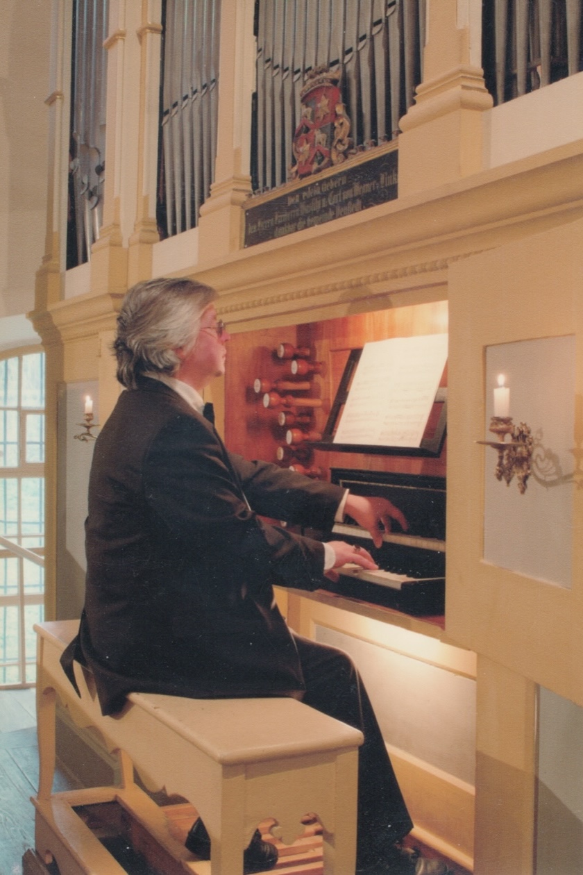 Michael von Hintzenstern an ›seiner‹ Liszt-Orgel, dem Instrument der Gebrüder Peternell in der Dorfkirche zu Denstedt